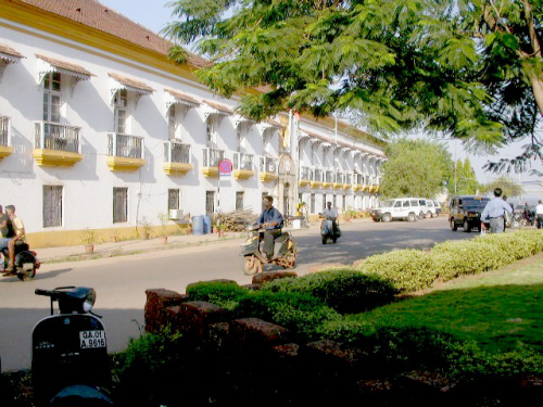 I am staying at the Panjim Inn www.panjiminn.com/ a friendly and comfortable place to spend a few days at a reasonable price (1180Rs per day) but it also has a much fancier place across the street if you want to spent the extra money. Its restaurant is good serving local dishes and you can get a bottle of Kingfisher, an Indian beer.